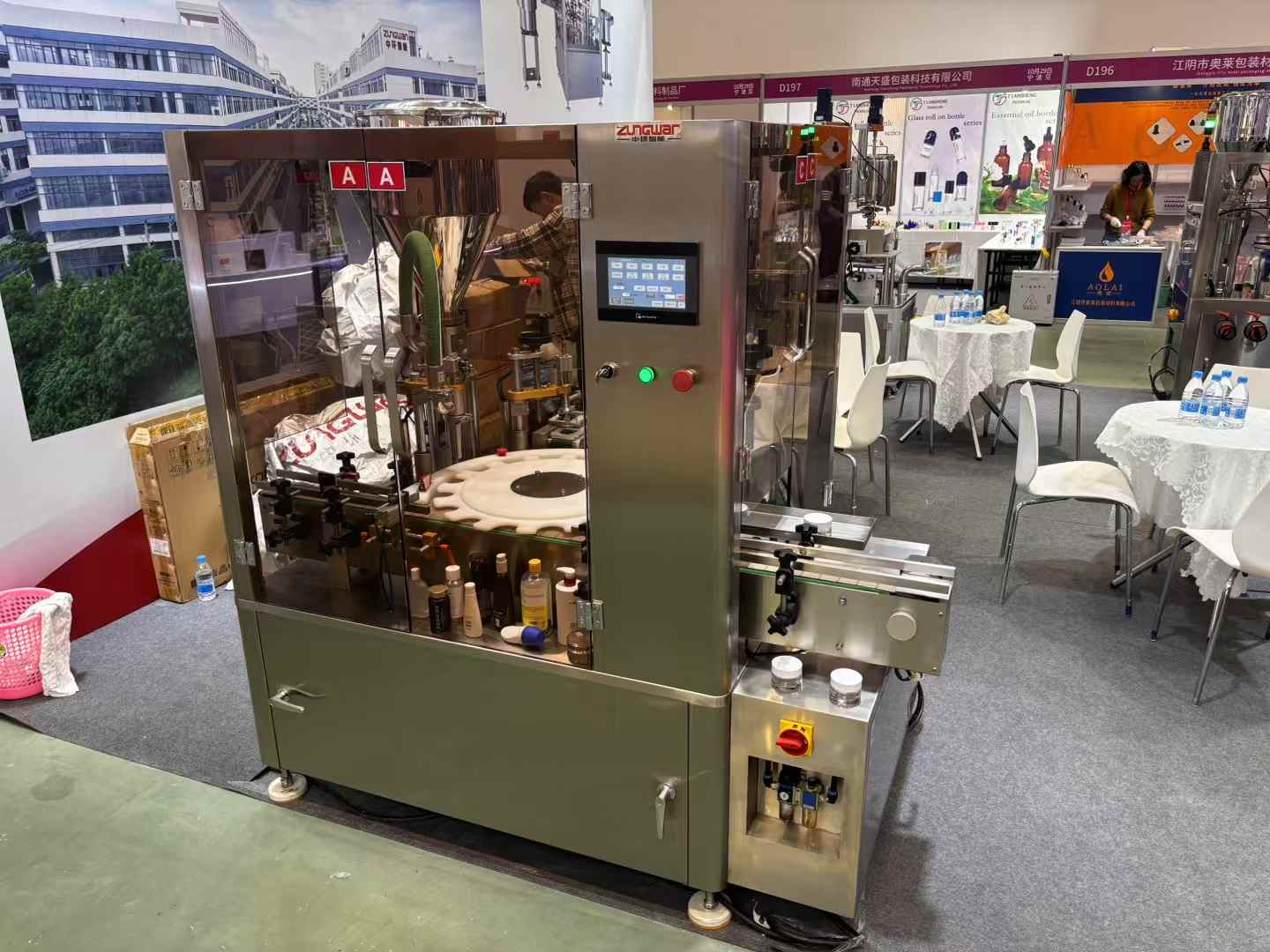 此次展會,中環(huán)智能攜帶多款拳頭產(chǎn)品重磅出擊,重點展示了公司在香水灌裝機、灌裝封尾機、灌裝旋蓋機等領(lǐng)域的創(chuàng)新成果與行業(yè)領(lǐng)先解決方案: